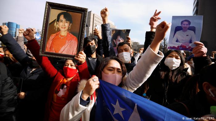 Birmaneses protestam em Tóquio contra militares...